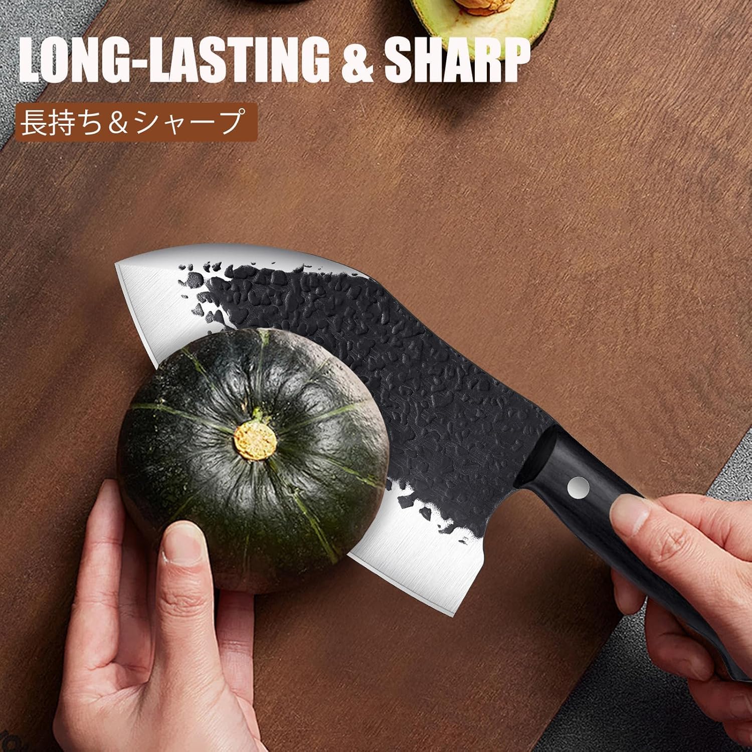 🔸 Material premium: acero de alto carbono forjado a mano, con filo duradero y propiedades antiadherentes