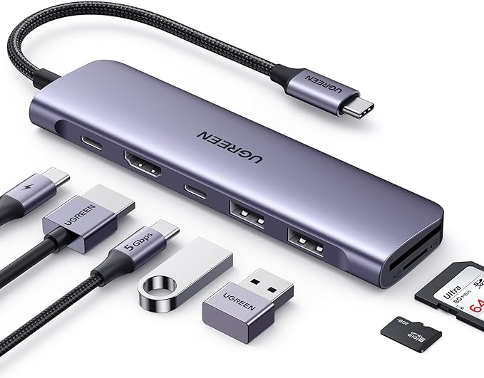 Hub USB C para portátil 7 en 1 USB C Dongle 4K HDMI, carga PD de 100 W, USB-C y 2 puertos de datos USB-A de 5 Gbps, lector de tarjetas SD/TF ** Publicado utilizando Astroselling **