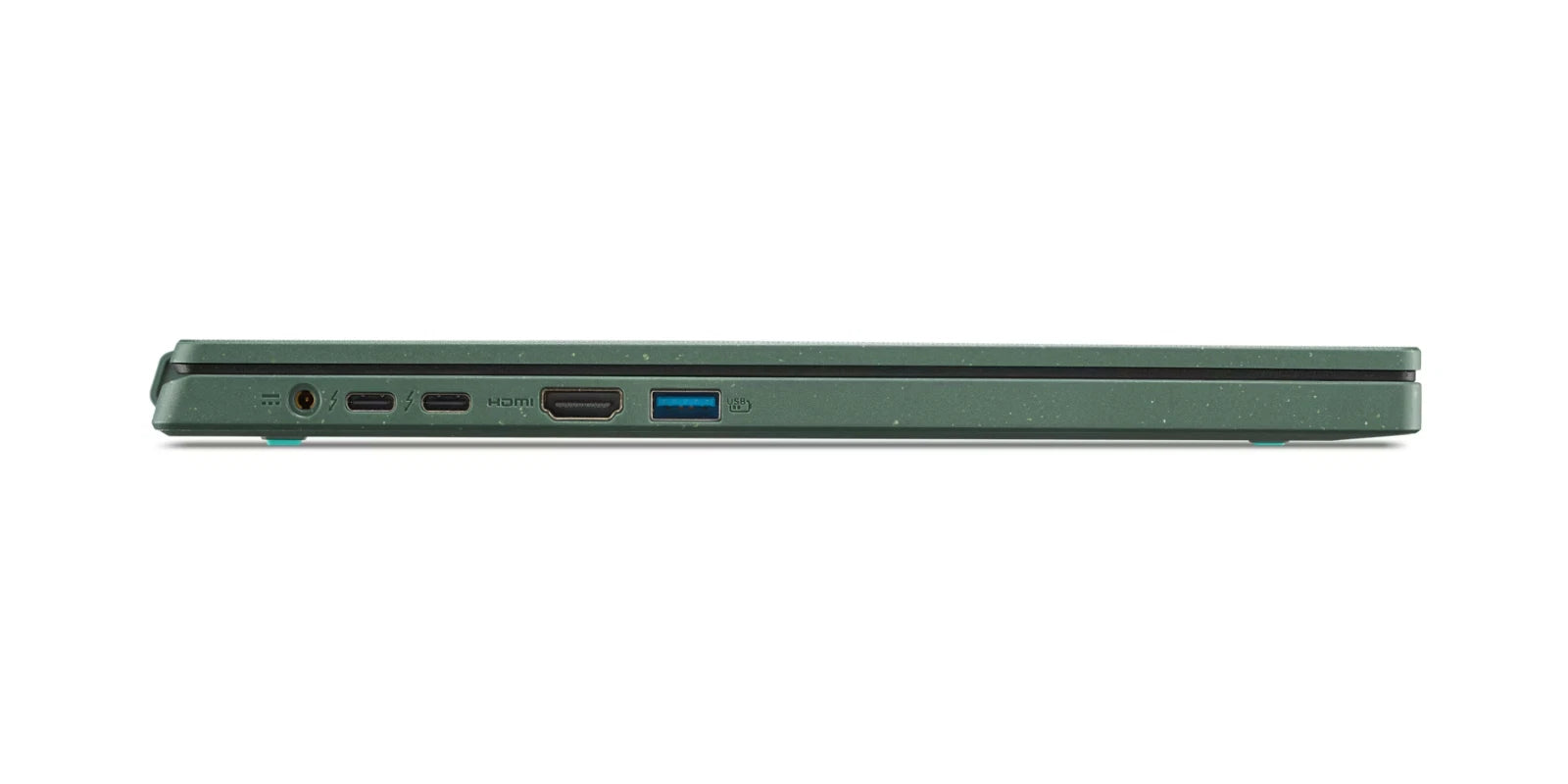 Diseñada para usuarios conscientes del medio ambiente, esta laptop combina rendimiento moderno con materiales reciclados y diseño sostenible.