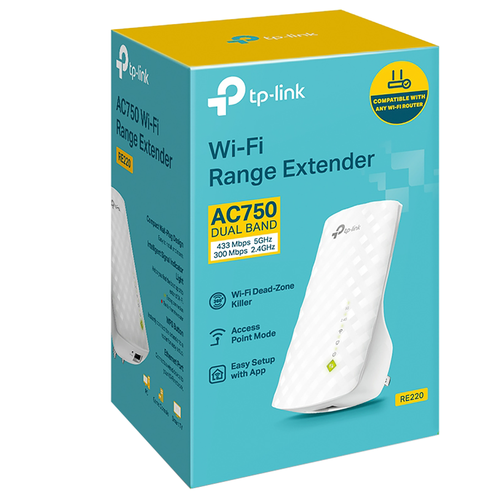 RED TP-Link RE220 WiFi Extender with Ethernet Port, Dual Band 5GHz/2.4GHz